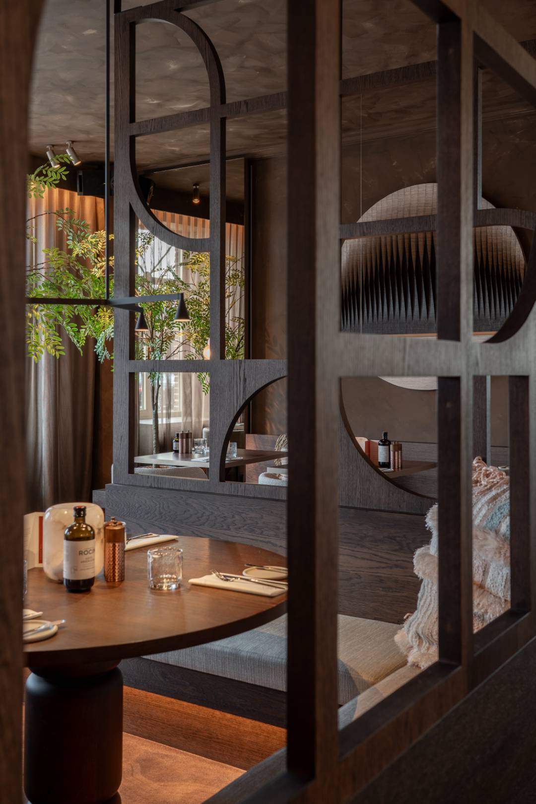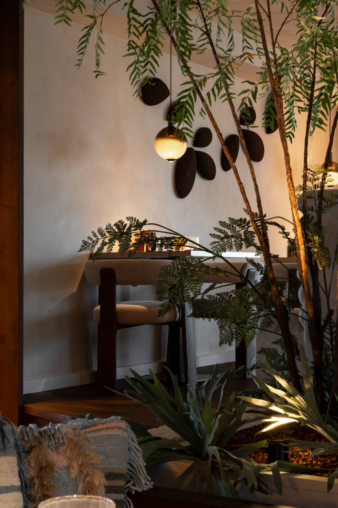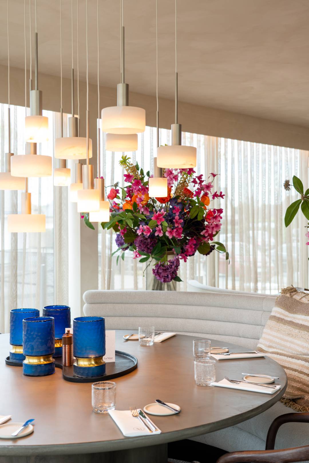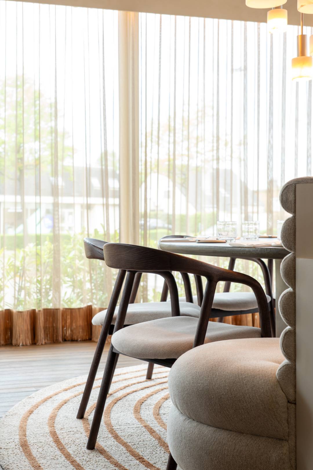 Bij La Mine is elk detail doordacht, van de warme, zachte verlichting tot de verfijnde inrichting. Organische hanglampen creëren een subtiele gloed boven de tafels, terwijl indirecte verlichting langs de wanden een serene ambiance brengt. Strategisch geplaatste spots accentueren de rijke materialen en elegante afwerking. In samenwerking met Dr. Light en Dr. Home hebben we een harmonieus totaalconcept gecreëerd, waar licht en interieur samensmelten tot een unieke en stijlvolle beleving.
